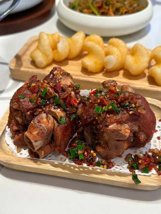 炸到隻豬手外脆內嫩,膠原滿分,咬下去喀滋響,皮薄肉厚不油膩。