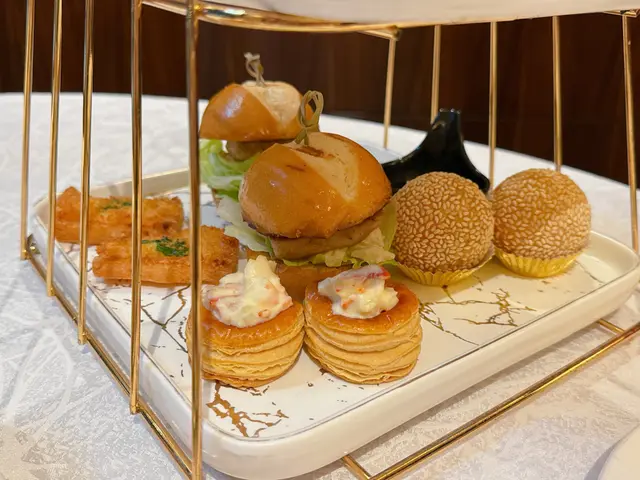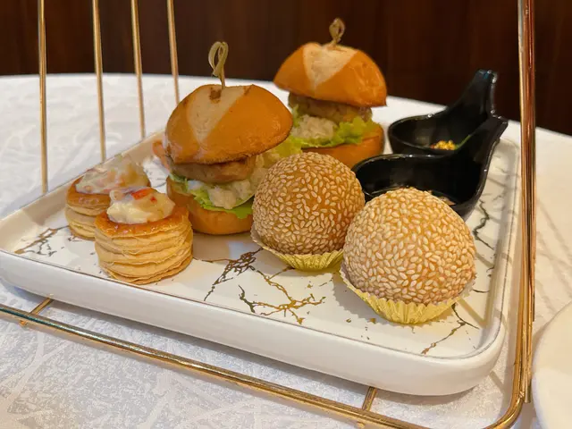 燉鮑魚伴金箔|粉紅松露素菜餃|沙律醬蝦多士|流沙紫薯煎堆仔