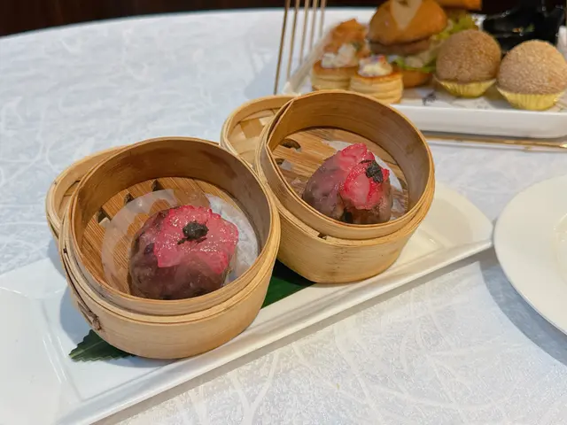 🍴推介粉紅松露素菜餃,中式點心即叫即蒸,熱辣辣呈上,外皮柔軟有嚼勁,咬開內餡充滿濃郁黑松露香,整體味道平衡,香而不膩👏🏻 👏🏻
