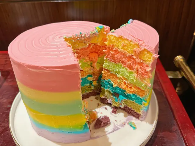 同場加映由咖啡閣精心製作之彩虹蛋糕🎂色彩繽紛奪目🍭無論係慶生定開派對都咁適合,打卡影相一流📸鬆軟海綿蛋糕入口軟滑😋每一種顏色代表一種味道,每層蛋糕味道均有明顯分別💁🏻♀️令人感受到無限甜蜜同滿足💓