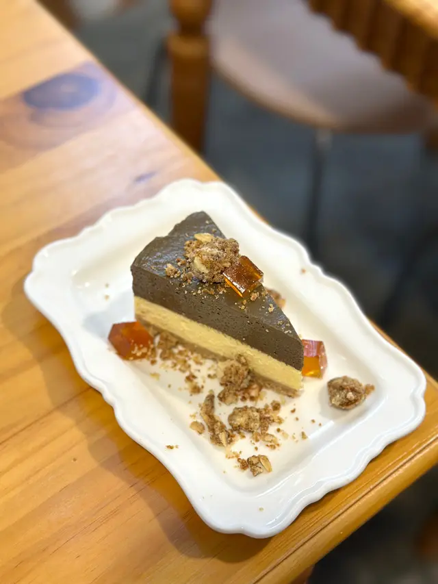 上層是茶香濃厚的鐵觀音芝士蛋糕,下層則是香滑的原味的芝士蛋糕,是開心的飯後甜品
