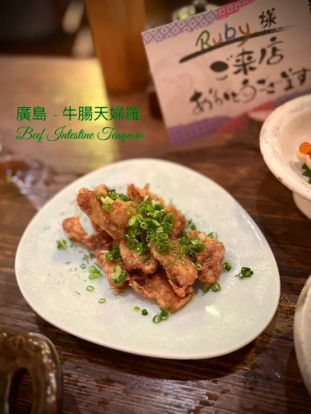 我都試過唔少牛內臟,但係牛腸天婦羅真係第一次仲係好有驚喜!外層炸得金黃酥脆,牛腸軟硬適中,味道濃郁。廣島以前有好多屠宰場,當地人用剩餘內臟創造美食,好有智慧!