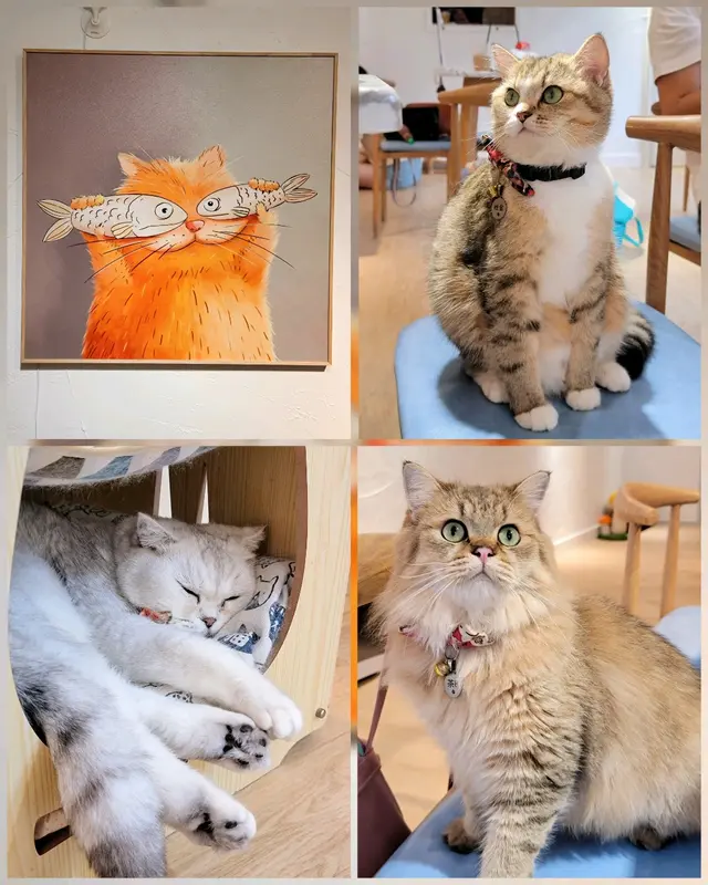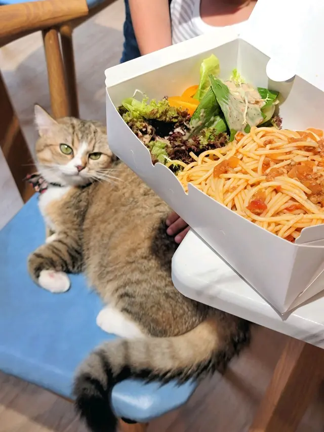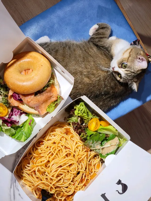 Cafe環境企理乾淨,放眼埋去有10零隻貓貓左右,擺放咗好多貓傢私俾貓貓玩,亦都有提供貓玩具俾客人同主子玩。除咗嘢飲,Cafe都有好似意粉、Bagel、All day、蛋糕等嘢食供應。