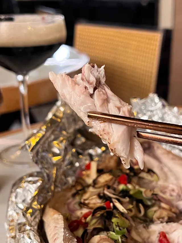 原條烏頭用香茅、檸檬葉烤到外皮香脆,魚肉超嫩滑仲好juicy😋蘸埋佢個酸酸辣辣既汁超開胃🥳