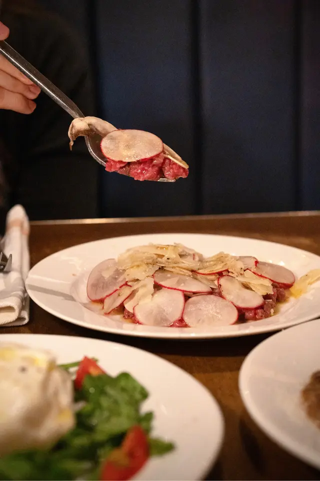 ⟡‧₊ 生牛肉他他 : 配鮮蘑菇片、水蘿蔔片同芝士碎,口感層次豐富🥩