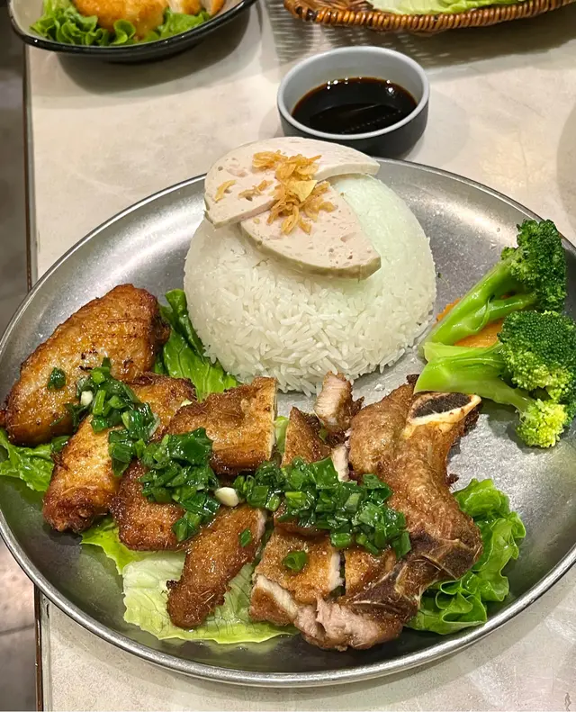 越式河內三寶飯:豬扒炸得香脆又厚肉,扎肉爽口香甜,雞翼則多汁且香,味道層次豐富,配飯食一流。