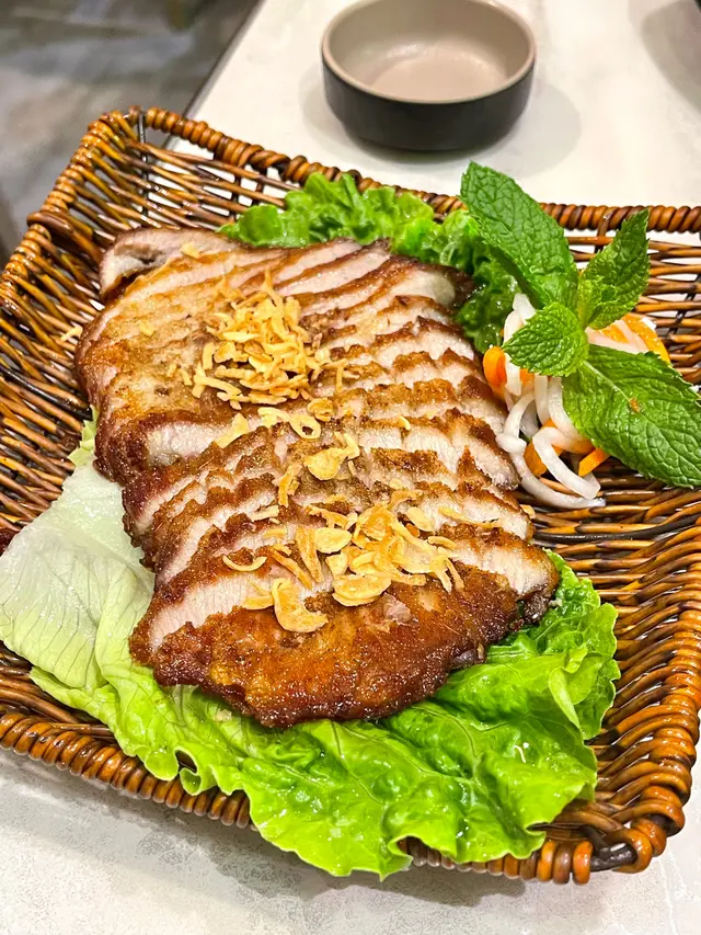 原份越式豬頸肉:肉質爽彈,加上蘸醬,吃起來清爽且十分開胃!