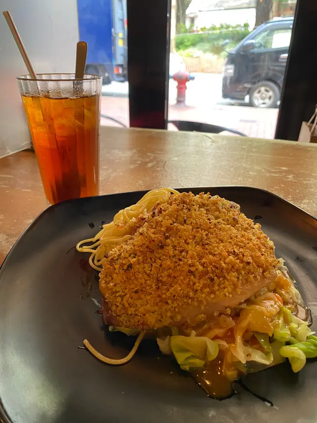 菜式用心價格相宜 wow2yummy等级42023-10-021K 浏览 关注 是日喺假期嘅中午1點前到咗餐廳,但已經滿座,好在早到,等咗唔洗5分鐘就有位。後來嚟嘅人客已經要等,但見都好似2-3個字內都入到座。1🔥保雲酥雞扒意粉 ($70) 店員推介嘅保雲酥雞扒,雞扒表面搽上黃芥末再加上滿滿嘅麵包糠幾開胃特別,而且都比想像中大。 雞扒已經好大份最後d意粉食唔哂。 呢個意粉冇汁,但個意粉本身有調味過,見佢有d香草撈咗入去,同埋夠水,所以冇汁都ok👍 🍑蜜桃紅茶餐飲就叫咗蜜桃紅茶少甜,甜度ok,飲到最底仲有d蜜桃粒粒唔錯。餐湯是日係白湯,入面有d粟米同火腿粒都可以,鐘意重口味嘅Yummy就落咗d黑椒。112以上食记乃用户个人意见 , 并不代表OpenRice之观点。赞好分享菜式用心價格相宜 森美餐廳 https://s.openrice.com/QrLT0imDD00检举 张贴 评分4味道4环境4服务4卫生4抵食用餐日期2023-10-02等候时间5 分钟 (堂食)人均消费$70 (午餐)