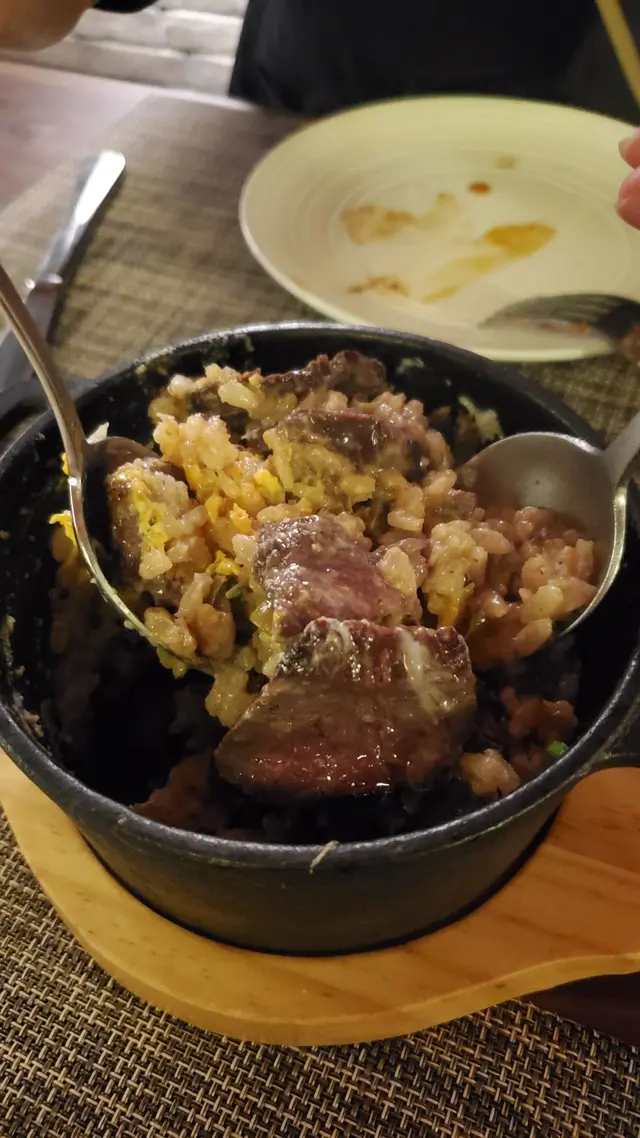 西餐廳中有煲仔飯已經特別,而且用牛柳跟鵝肝結合都算新穎。當店員倒入濃郁的鵝肝醬時已聞到好香,再將之與蛋黃一起攪拌混合,飯粒吸盡所有精華,加上少許香脆飯焦好好食;牛柳軟嫩,份量不少;連我比較少食飯的人都食了整整半煲。