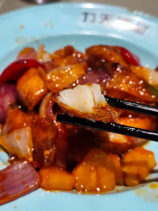 魚柳外層炸得酥脆,內裡卻保持鮮嫩,口感對比強烈。菠蘿的酸甜味與魚柳相得益彰,讓整體味道更加平衡。醬汁濃郁,十分開胃。薯仔中間加入胡麻醬,味道更見豐富吸引。