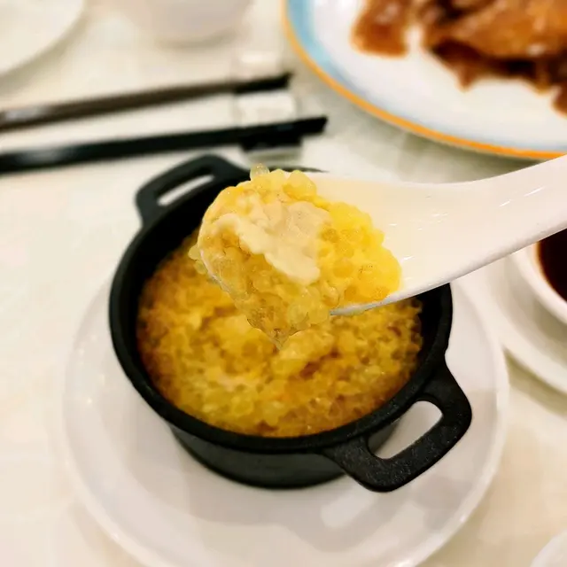 最後就係甜品西米焗布甸,餐牌寫話係蓮蓉餡,但係食落我覺得似奶黃,香香甜甜都幾好食。