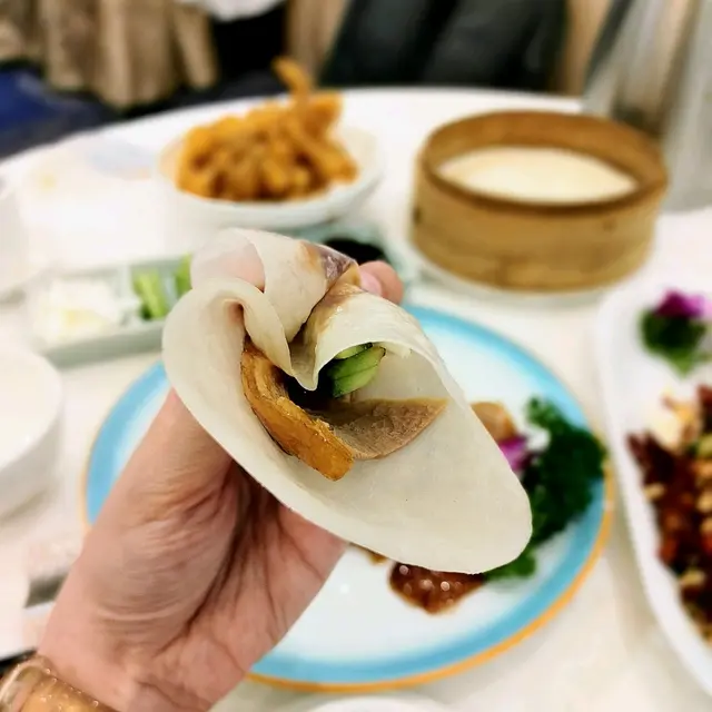 仲有半隻片皮鴨,皮脆肥味,加埋青瓜絲京蔥絲同海鮮醬,甜而不膩好好食😍