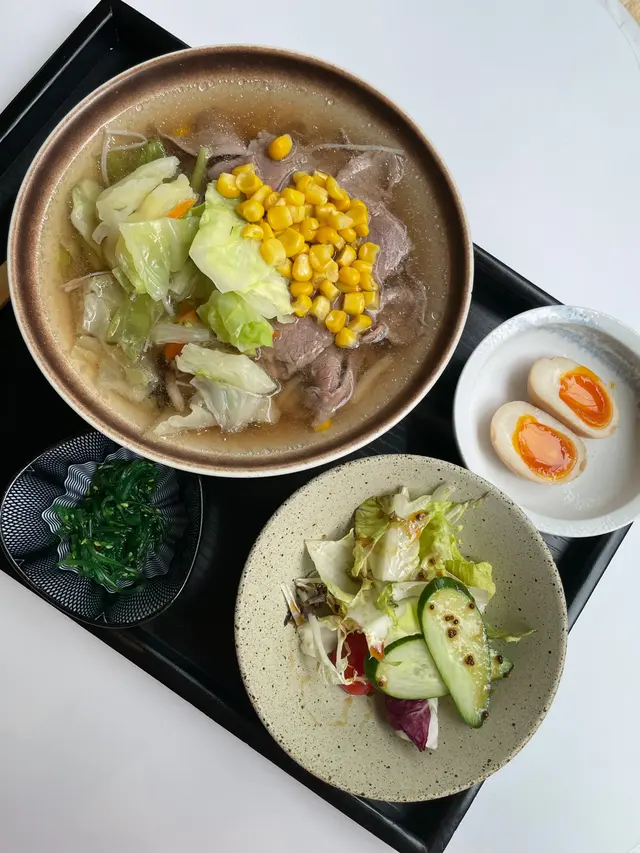 #安格斯牛肉稻庭烏冬,牛肉切的厚薄,剛剛好,容易入口,而且份量也很多,稻庭烏冬香滑,還有蔬菜類粟米椰菜等,另加去了醬油糖心蛋,令到整個稻庭烏冬定食更加滿足。