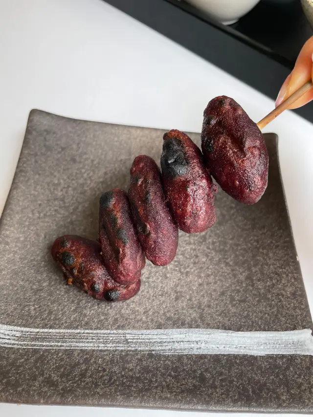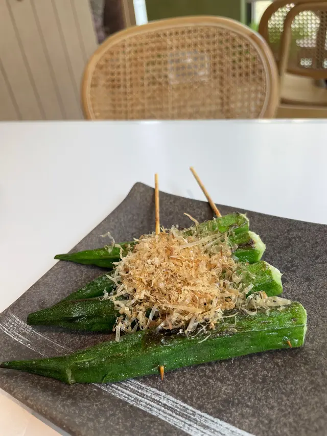 加配優惠中也選擇了#日本迷你甜薯串,細細粒迷你甜薯串,每粒入口容易,而且番薯甜味濃。#鹽燒秋葵串 四條鹽燒的秋葵,加上日本木魚和醬汁。鹽燒的味道中和了秋葵中帶黏性的感覺。