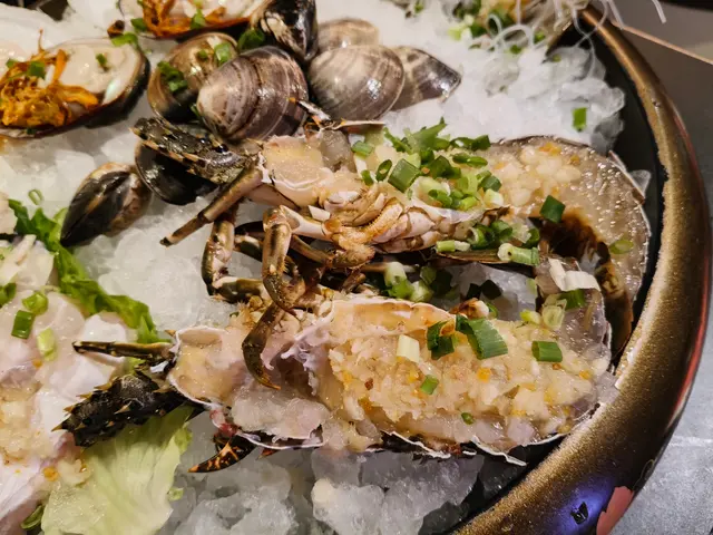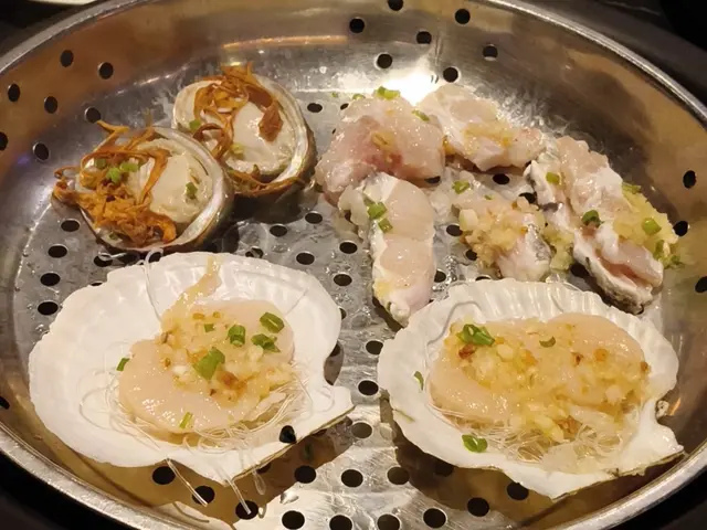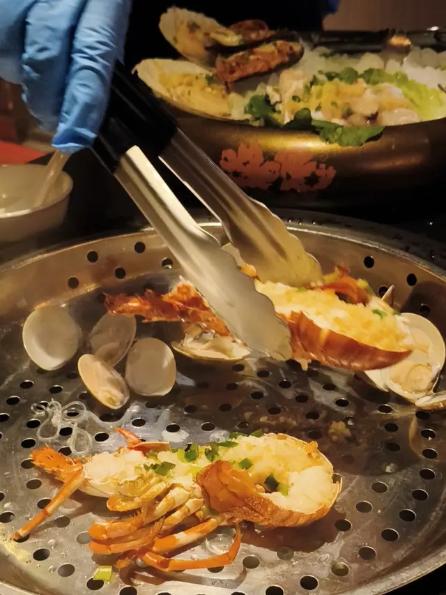 海鮮拼盤份量十足🦀:「生猛龍蝦」肉質彈牙、「龍躉件」嫩滑鮮美🐟、「大元貝」肥美多汁、「蘇格蘭蟶子皇」爽脆飽滿,還有「生猛鮮鮑魚」及「貝殼盛盤」🐚,全部即蒸即食,鮮度滿分!💯