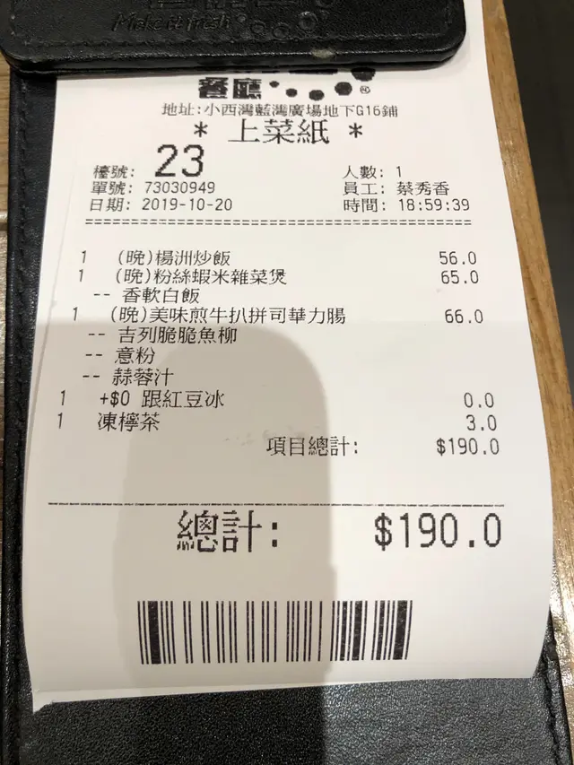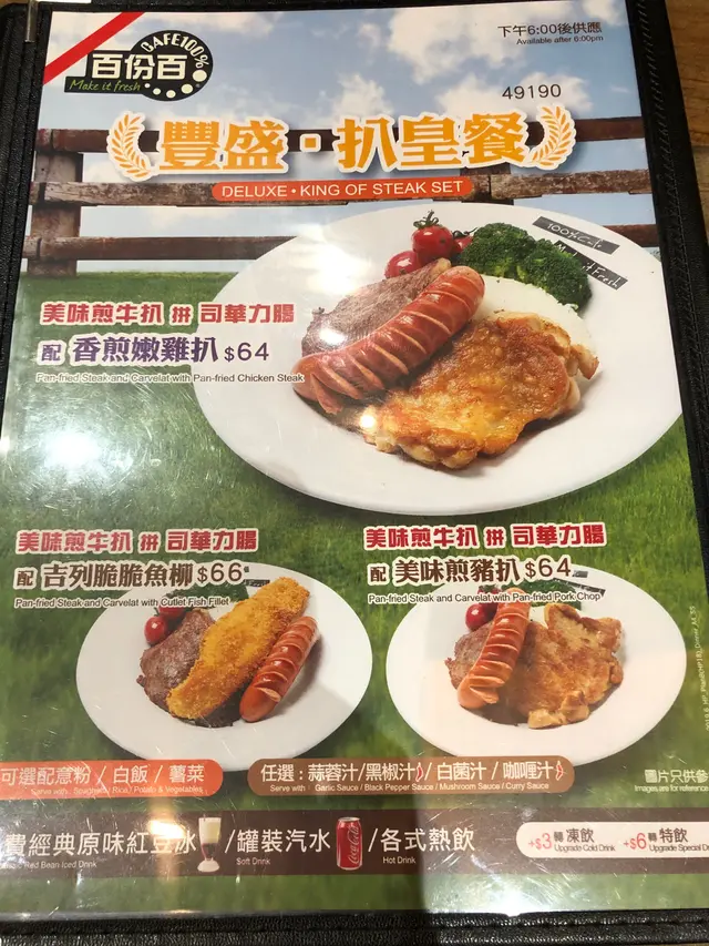 藍灣半島中的茶記 胃食玩具王等级42019-10-232K 浏览 关注 今晚黎到藍灣半島,見到各食店都好多人喺店多等位,最後揀左嚟百份百餐廳。餐牌內種類多元化,而價錢又實優,適合不同人士需要美味煎牛扒拼司華力腸配吉列脆脆魚柳$661. 美味煎牛扒拼司華力腸配吉列脆脆魚柳 $66 連經典原味紅豆冰。個醬汁係另上,今次揀左蒜蓉汁,汁內有粒粒蒜頭,夠晒蒜味。意大利粉用牛油炒過,充滿香味,加上餐飲免費配紅豆冰,真係超值,粒粒紅豆夠大粒及淋,好味揚州炒飯$562. 揚州炒飯 $56,夠鑊氣,有一般大排檔火喉,炒飯料亦豐富,只略嫌落多左油去炒。粉絲蝦米雜菜煲$65犂麥飯3. 粉絲野菌蝦米雜菜煲$65,連犂麥白飯,夠晒健康以上食记乃用户个人意见 , 并不代表OpenRice之观点。赞好分享藍灣半島中的茶記 百份百餐廳 (藍灣廣場) https://s.openrice.com/QrLT0Seis00检举 张贴 评分4味道4环境4服务4卫生5抵食推介美食美味煎牛扒拼司華力腸配吉列脆脆魚柳$66揚州炒飯$56犂麥飯粉絲蝦米雜菜煲$65用餐日期2019-10-20等候时间20 分钟 (堂食)人均消费$60 (晚餐)