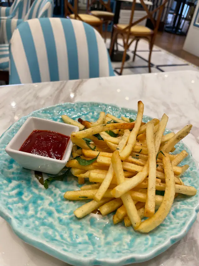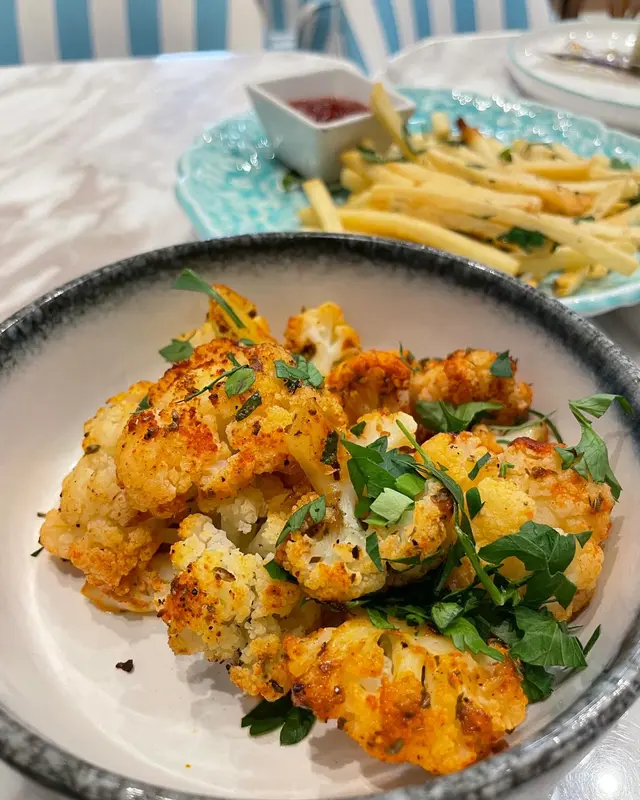 ᪥小食加上焗椰菜花,當中加入了獨特的的香料,吃巧是感覺有點香脆,但是內暖,薯條也新鮮熱辣。