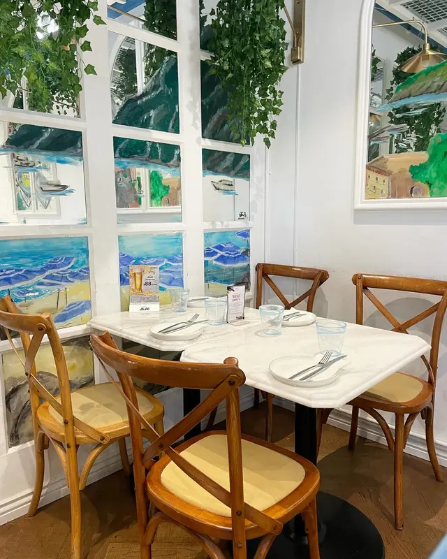 ᪥這裏位於將軍澳海濱南岸餐廳,裝修帶有地中海風格,設室內和室外座位,以藍色和白色為主充滿了希臘風格。