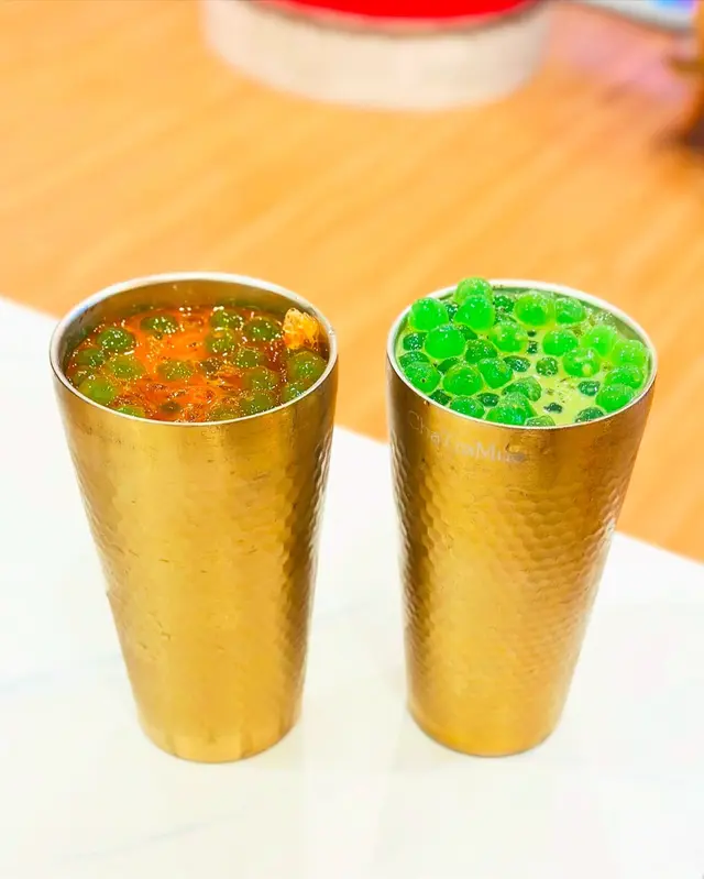 現打抹茶粉與斑蘭汁形成雙綠色系交響,抹茶的微苦與斑蘭的甘甜互相襯托,珍珠咀嚼間釋放椰香餘韻,冰飲層次更為清爽