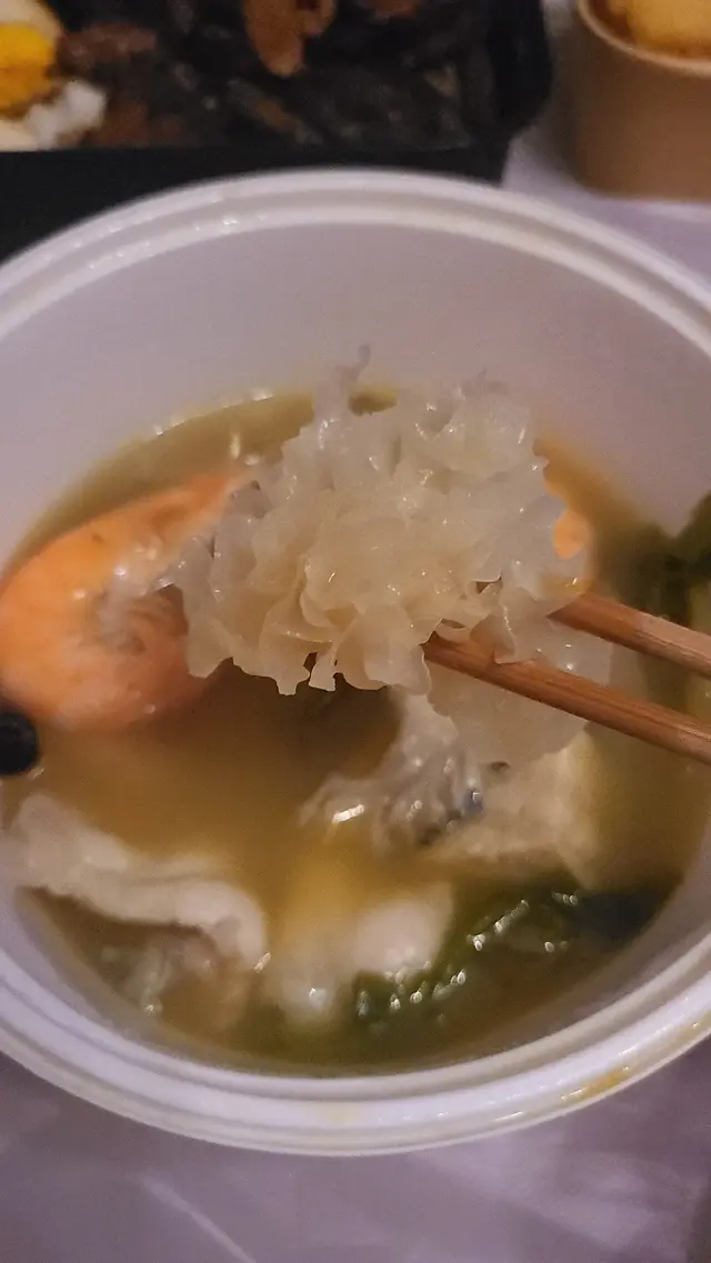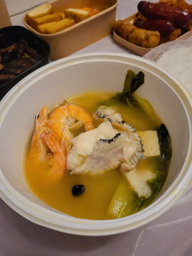 🦑那魯灣金湯配龍躉 $68 ~ 可配雞、肥牛、金沙骨、龍躉! 另可選配新竹米粉、金門麵線! 我最愛新竹米粉, 又軟又滑! 湯底酸酸辣辣的很開胃, 原來除龍蠆外, 還有蝦、蜆、雪耳、菇、菜等, 份量超級多, 十分超級豐富! 海鮮新鮮又鮮甜, 完全沒有腥味, 超值呢!
