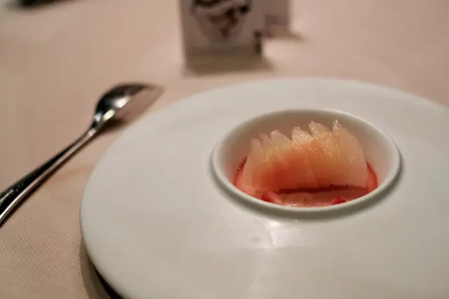 期待已久的三星法日菜,預約真的全靠緣份🫢。餐桌以木雕屏風和綠植隔開,私隱度頗高;主廚親自介紹每一道菜式,可見用心。