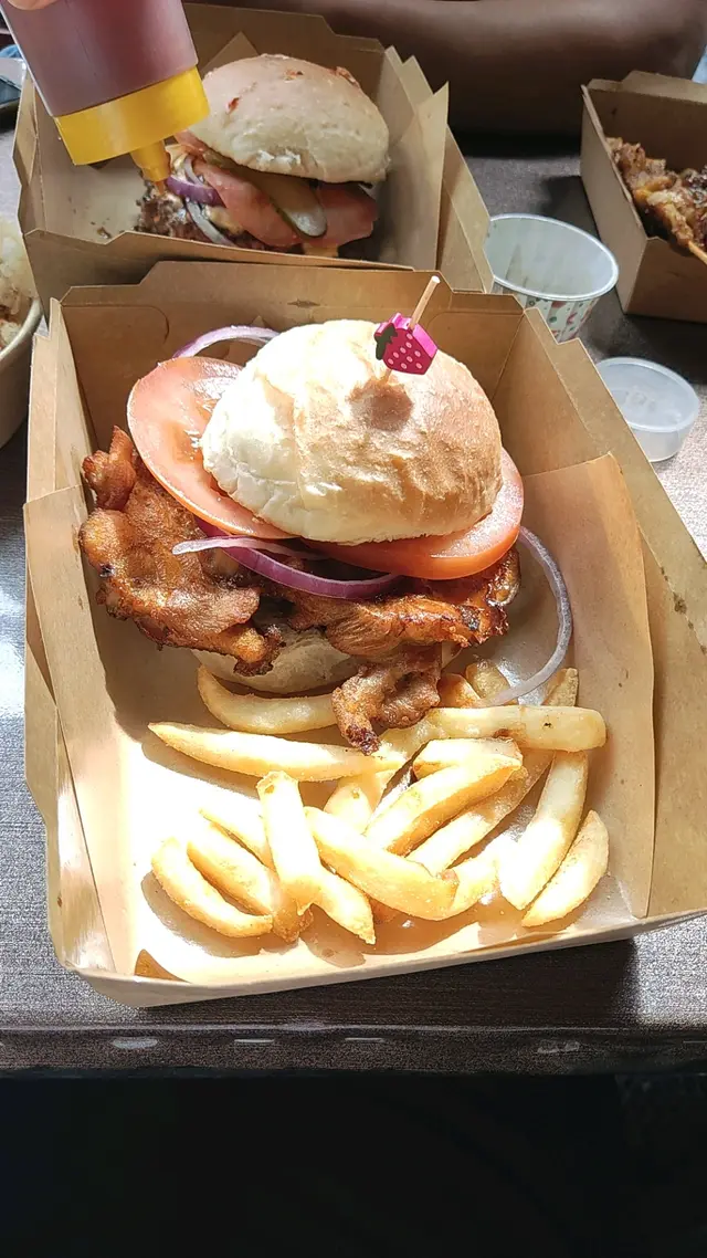 🌈 大食漢堡😀😀😀 薯條唔多,淋身,沙津夠多,醋夠酸,肉好大塊,重黑椒味 ,偏咸, 總括而言值得一試👍🏻👍🏻