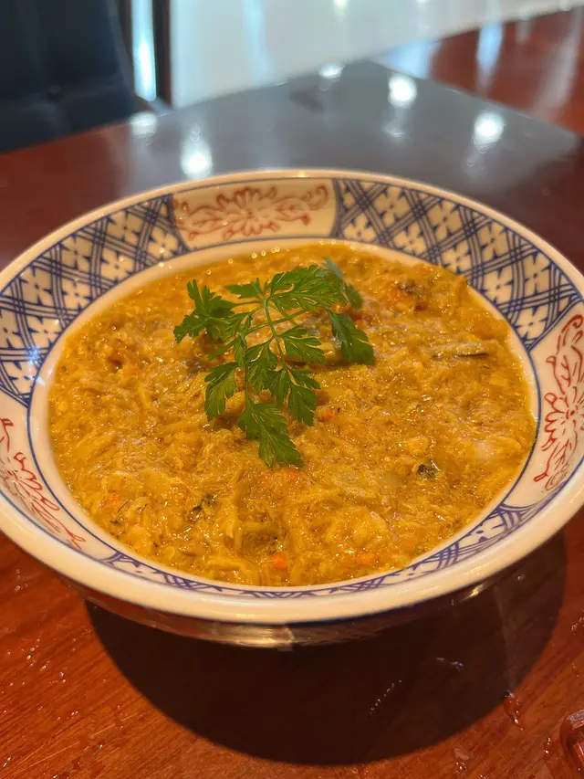 一上桌已經聞到好香蛋味!用刀輕輕劃開蛋皮,蛋液傾瀉出來的畫面真的很治癒。再淋上橙黃色蟹黃蟹膏,味道又鮮又濃,撈埋軟硬適中的珍珠飯,每一啖都係滿足。