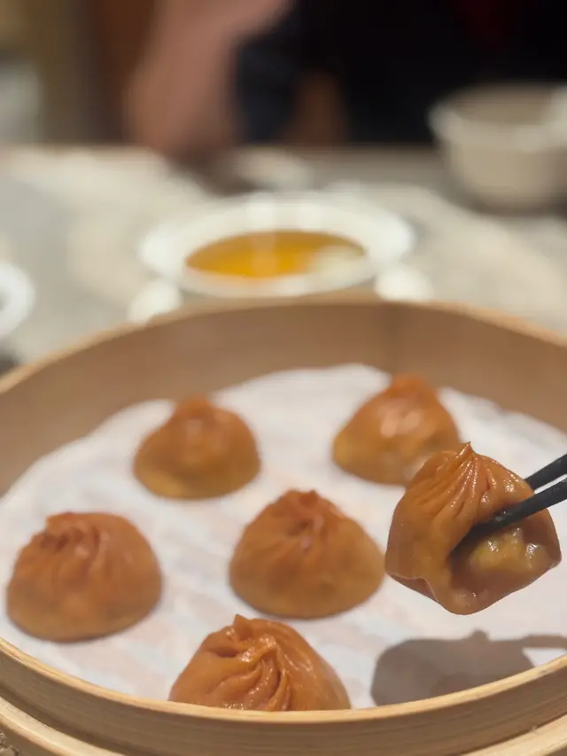 蟹粉小籠包的精華在於那一口湯汁。由於加入了蟹粉和蟹油,它的湯汁顏色會比普通小籠包更黃,味道也更為醇厚複雜。湯汁入口,先是感受到豬皮凍融化後的膠質感,緊接著蟹黃的鮮香就會充滿整個口腔。