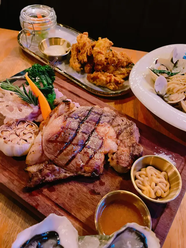 分別係炸雞翼、Prime 肉眼扒同香蒜蜆肉意粉