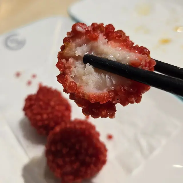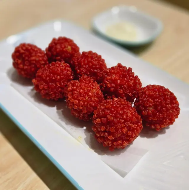 荔枝啵啵蝦球相當精美,炸得紅通通的像荔枝,以脆脆的炸米包覆蝦球,一咬荔枝啵啵蝦球外酥脆內彈牙,嚼感結實飽滿,蝦肉鮮甜,建議一定要趁熱吃,再醮上沙律醬,酸酸的風味更佳,荔枝啵啵蝦球的酥彈感容易讓人不自覺多吃幾球。