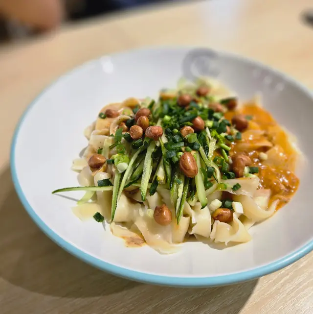 熱拌手撕雞刀削麵滿足肉食控的味蕾,滿滿的手撕雞加上青瓜絲、蔥花、花生,配上獨門秘製醬料,使人胃口大開,吃的時候記得攪拌均勻,攪拌的時候就能聞到醬香。手撕雞扎實有嚼勁,刀削麵具有粗度,手撕雞混合麵條一起享用增添豐富食感。