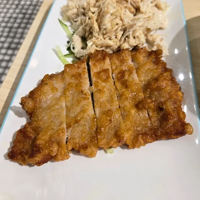 光看豬扒就知道不簡單,豬扒外層炸得酥香,灑上椒鹽後香氣更明顯,咬下去是那種外脆內嫩的口感,豬扒汁多,鹹香恰到好處,味道、咬感拿捏得非常精準,每一口都帶著廚師經驗的底蘊和無敵炸功。