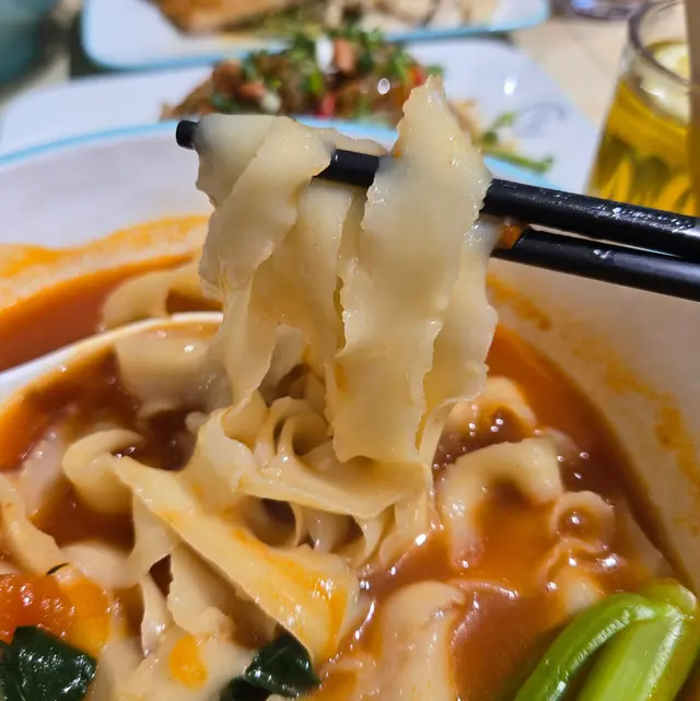天氣稍涼的時候,喝上暖暖的湯最適合不過,我不得不說,這個番茄湯刀削麵真的對味,番茄湯喝來順口又飽足,刀削麵有吸收到甘甜的番茄湯頭,番茄湯可是精華中的精華,喝了令人回甘,特別味美。