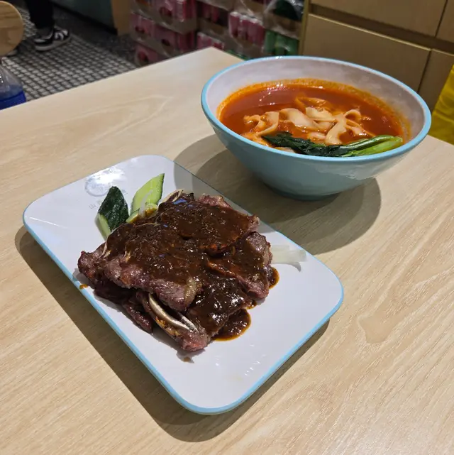 黑椒牛仔骨番茄湯刀削麵完全不輸豬扒的熱度,黑椒牛仔骨鎖住肉汁,大口咬下爆出黑椒濃香與肉香,香氣逼人。黑椒牛仔骨肉嫩嫩的,完全不需費力咀嚼,不會吃得狼狽,而且黑椒牛仔骨份量無敵多,深得我心。