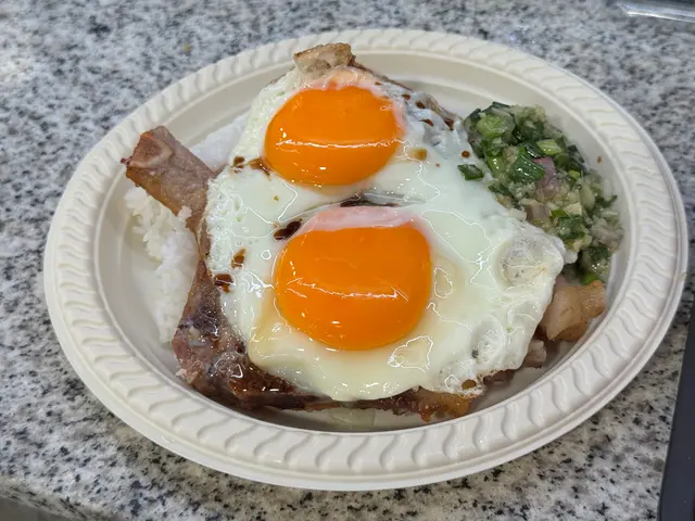 $50「蔥油豬扒雙蛋飯」:豬扒大大塊煎得幾香口,豬扒肉質軟熟,配埋煎雙蛋,連埋蔥油一齊撈飯食,好夾🤣