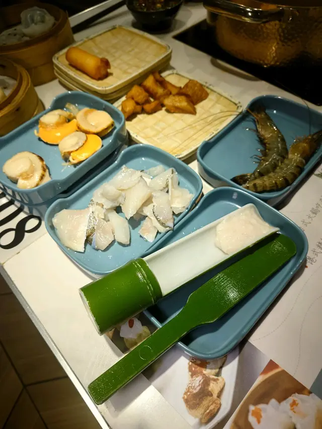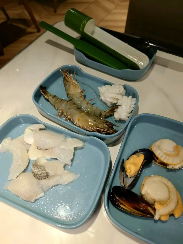 虎蝦都幾大隻、鱸魚片滑捋捋,扇貝、蝦滑、青口、魷魚等都好有鮮味。