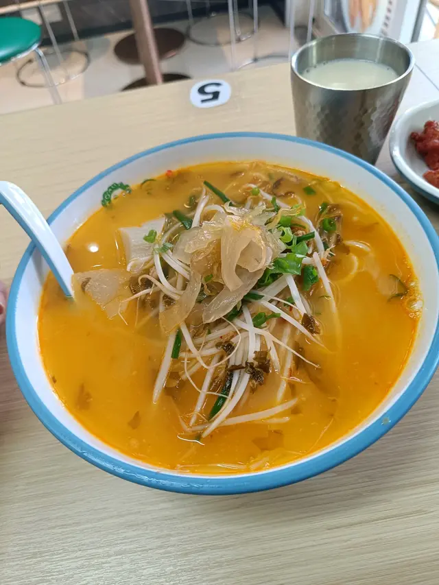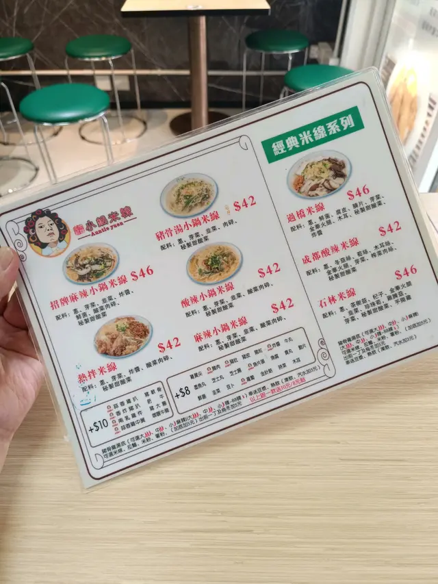 藍地新開左一段時間既米線鋪,logo 係嗰好搶眼既師奶,今日終於入去試一試,穩陣先叫左嗰酸辣米線配南乳雞件,再加肉醬同埋蘿蔔同豆漿。
