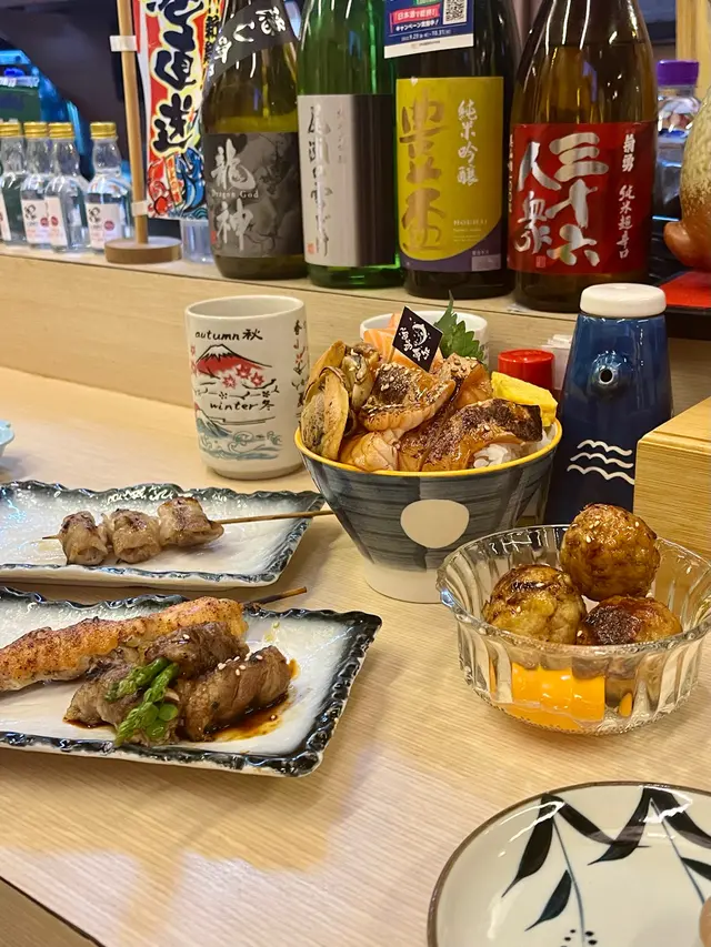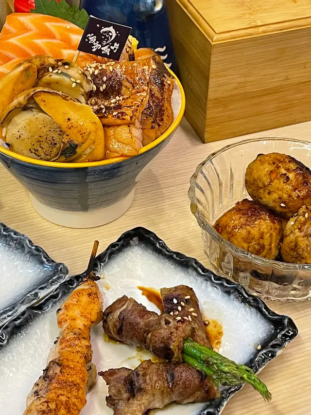 呢間餐廳掛滿魚燈籠 坐喺吧枱可以見到師傅拎火槍燒三文魚腩嘅珍貴時刻🐠魚生飯可以自己揀配料 都提供串燒、手卷、刺生等新鮮食材款式 份量啱啱好 食飽可以再去隔離幾條街食糖水😋