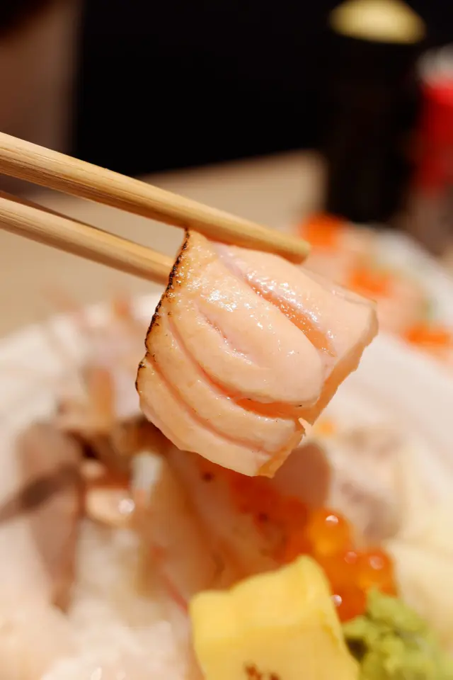 魚生經過火炙,入口多了一陣焦香味,魚肉處於半生熟的口感,柔嫩拿捏得剛好,我更喜歡!
