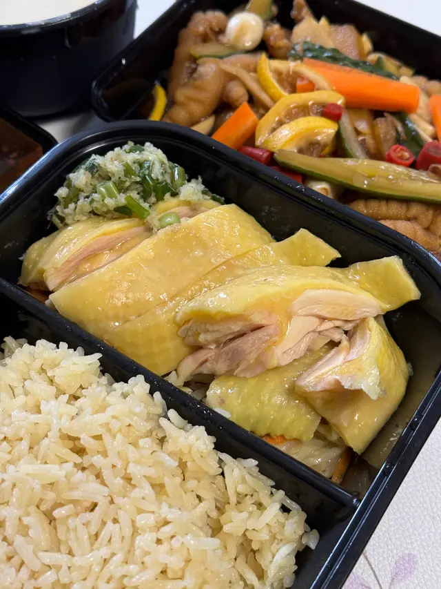 街坊泰式外賣店。海南雞油飯唔錯 wingshuen1123等级42024-08-18263 浏览 关注 落車見到呢間新開外賣店,有海南雞、霸王雞、醬油雞等等,同時有滷水小食、串燒、雞腳等,方便加料做餸,買完老闆話佢地最近出左糕品同糖水,唔算好貴就試埋🙈2🌟無骨海南雞飯轉香油飯|$54油飯勁大兜,2-3個人食都得,海南雞約有7-8件,雞皮爽得黎有d彈性,肉質幾嫩滑,墊底仲有芽菜,整體質素唔錯👍🏻1🌟檸檬蒜香雞腳|$35幾開胃前菜小食,味道除左有檸檬酸味,仲有少少辣,雞腳入味,口感爽口唔會腍啤啤,仲有青瓜、紅蘿蔔醃菜🌟腐竹糖水|$20原本覺得$20有少少貴😂但見話係用樹記腐竹就試試,糖水係凍上,食到一片片腐竹,有點咬口,不過唔算多料🌟糕點|$6/件有椰汁糕同桂花糕,味道比較淡,如果椰汁糕可以加埋西米會更加開心🤣以上食记乃用户个人意见 , 并不代表OpenRice之观点。赞好分享街坊泰式外賣店。海南雞油飯唔錯 嚐味館 https://s.openrice.com/QrLT0bV5L00检举 张贴 评分4味道3环境5服务4卫生4抵食用餐途径外卖自取