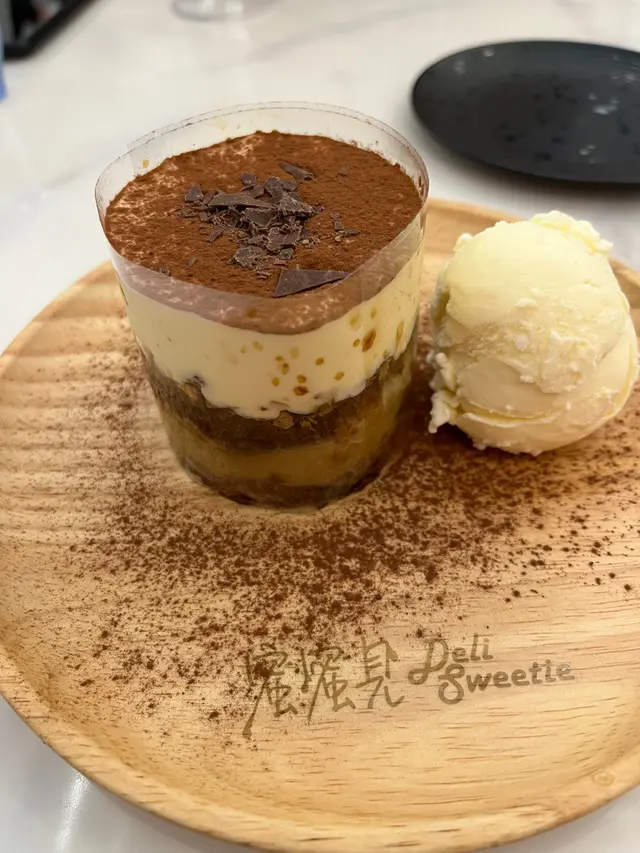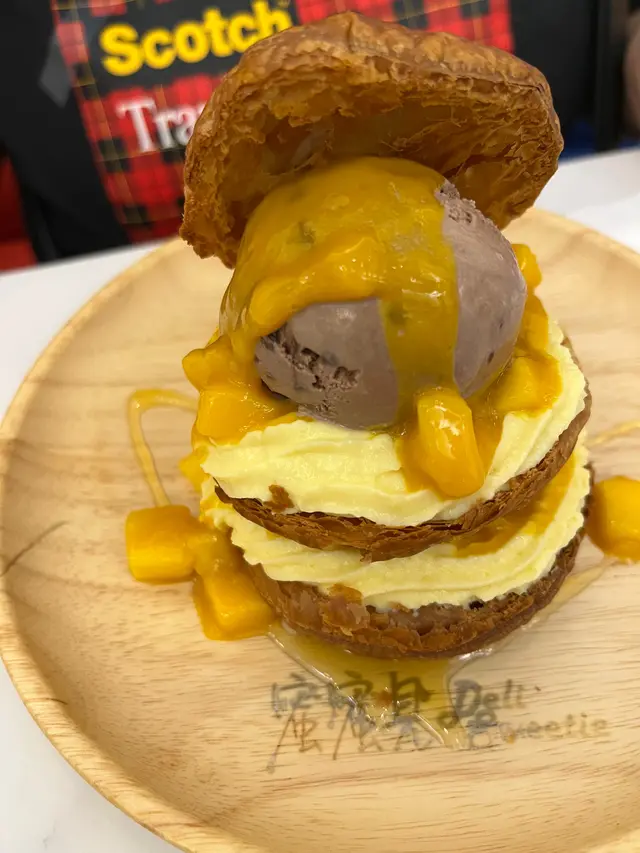 到甜品既部分,叫左一個芒果拿破崙配朱古力雪糕,佢呢度唔同其他地方係長方形正方形,佢係泡芙形狀,拿破崙整到好脆口好好食