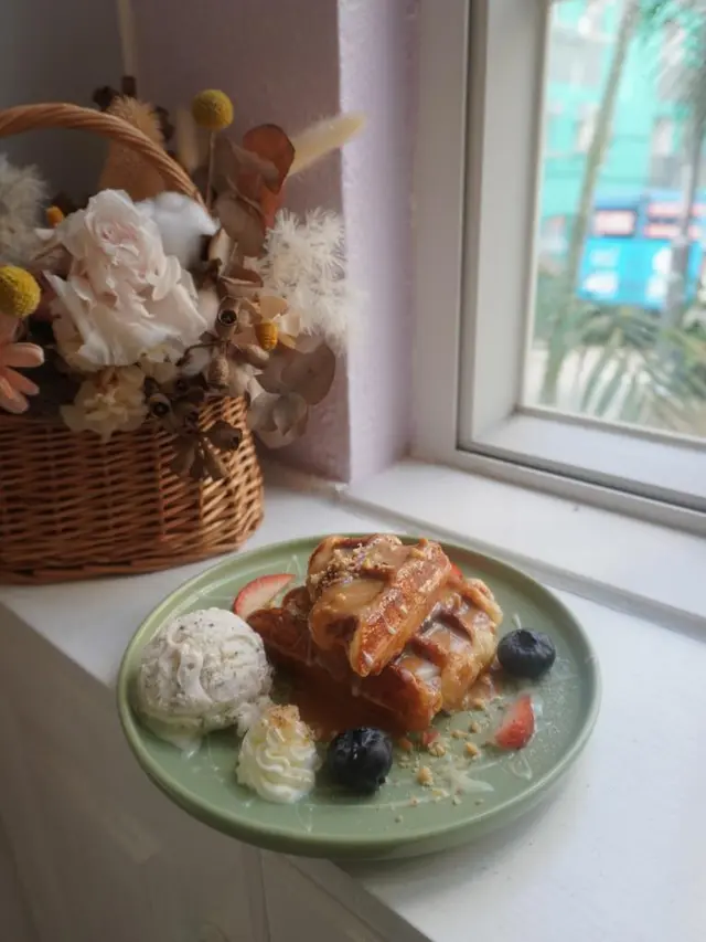 花生醬煉奶牛角包窩夫配雪糕 $78