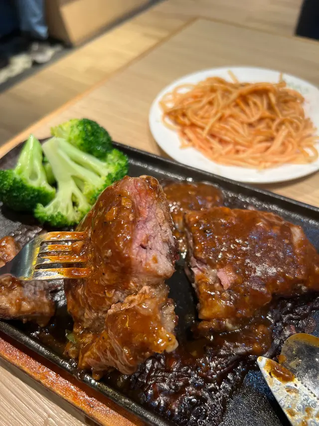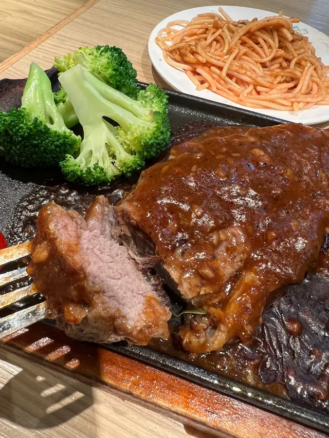 講返個西冷扒,舊牛扒勝在夠厚,夠啖啖肉,黑椒汁份量多,夠淋有凸,塊鉄板亦好夠熱,上左枱灘左成分鐘先淋汁,都勁多煙,D汁周圍噴,但係塊扒明顯就有D乾身同少少鞋口,我叫五成熟,其實都差唔多熟晒,不過又真係冇理由要求快餐式鐵板達到咁嘅要求,人哋又唔係扒房,都係一分錢一分貨啦。另外,因為我對鬆肉粉敏感,落左少少我都會即刻唔舒服,佢嘅牛扒我證實係冇落嘅。