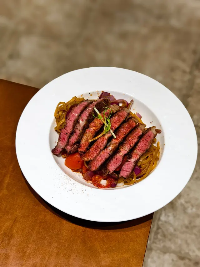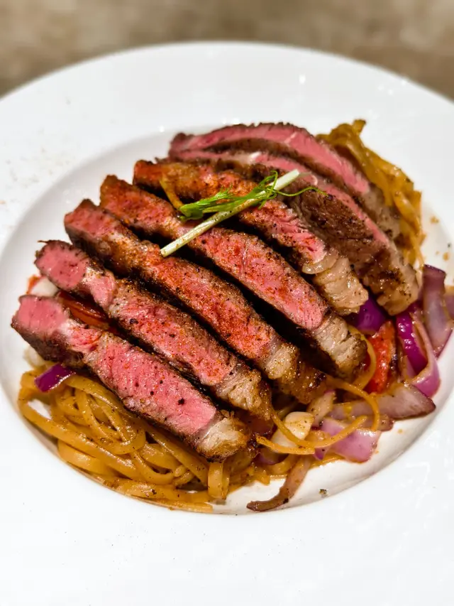 3️⃣ 香煎牛腱板扒配蒜香黑椒炒意粉 $168 🥩🍝