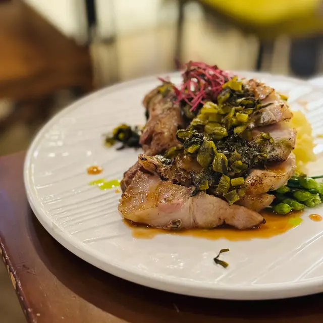 四款主菜入面我哋揀咗十勝豚肉眼高菜漬,厚切嘅十勝豚肉,肉眼部位,油脂豐富,口感軟腍,配上微甜嘅醬汁同埋酸酸嘅高菜漬,兩者味道互相中和,再配上軟滑嘅薯蓉。