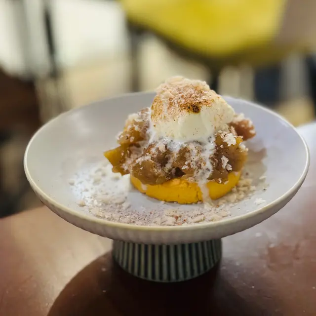 香甜嘅焦糖蘋果粒粒配上牛油味香濃香脆嘅餅皮仲有冰凍嘅雲呢拿雪糕。