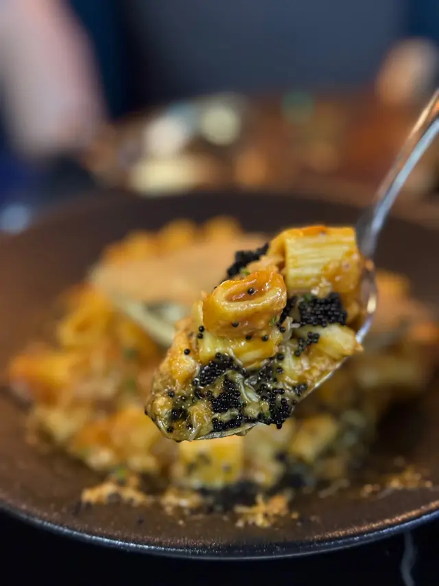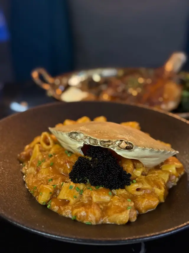 蟹肉濃郁又鮮甜,蝦汁香味黏住每條意粉,滑溜又掛汁,配上黑色魚子醬,爆汁鹹鮮,令味道層次更豐富,幸福感滿滿