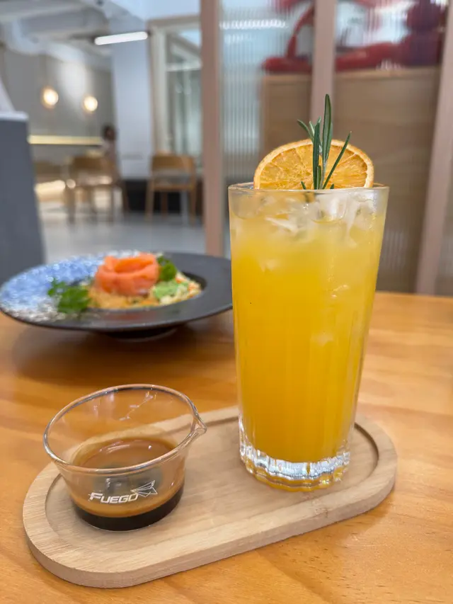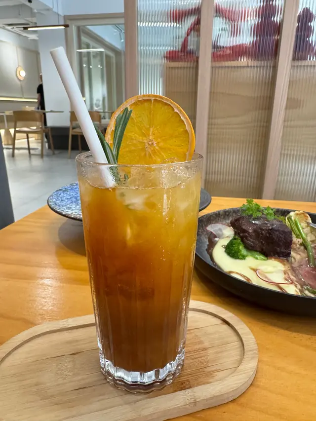 這款冰美式咖啡以濃郁的咖啡為基底,搭配新鮮的橙汁和冰塊,可以自行調教濃度,帶來清新的口感。橙香與咖啡的苦味形成對比,適合炎熱的夏季享用。