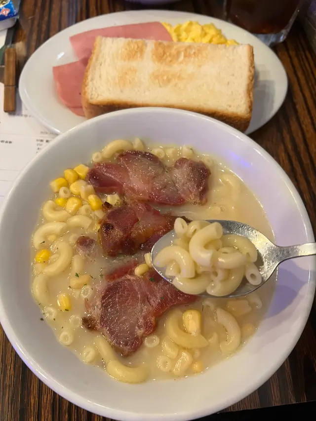 通粉加咗粟米粒點綴,味道同一般茶記差唔多~