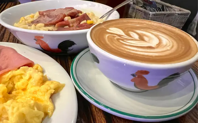 跟餐+$8就有拉花咖啡☕️好低飲💯所有嘢都係用公雞碗裝🐓✨